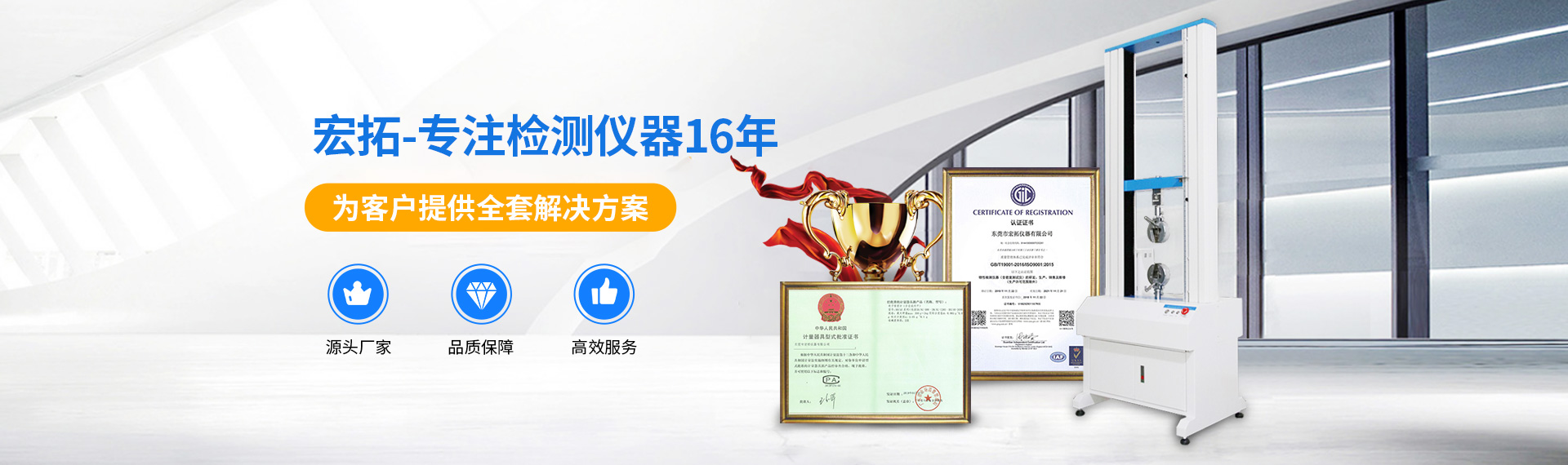 宏拓儀器重視生產(chǎn)過(guò)程中的質(zhì)量管控,必須通過(guò)ISO9001:2015質(zhì)量管理體系管理認(rèn)證 目前主要產(chǎn)品線(xiàn)有:拉力試驗(yàn)機(jī)、橡塑膠類(lèi)儀器、環(huán)境檢測(cè)儀器、磨損類(lèi)儀器、皮革鞋類(lèi)儀器、紙品類(lèi)儀器、箱包類(lèi)儀器、電池類(lèi)儀器、線(xiàn)纜與電工電器儀器、密度儀、水份測(cè)試儀、材料阻然性能測(cè)試儀等儀器