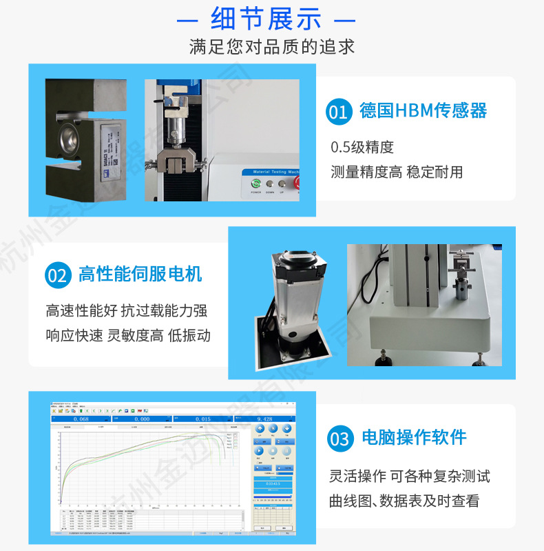 單臂伺服拉伸強(qiáng)度試驗(yàn)機(jī)是電子技術(shù)配合軟件技術(shù)與機(jī)械傳動(dòng)相結(jié)合的新型材料試驗(yàn)機(jī),采用進(jìn)口交流伺服電動(dòng)和交流伺服調(diào)速系統(tǒng)作為動(dòng)力源;采用進(jìn)口精密滾球傳動(dòng)螺桿與導(dǎo)向桿,采用進(jìn)口0.5級(jí)精度力值傳感器,再通過高精度力值測(cè)量系統(tǒng),實(shí)現(xiàn)測(cè)量。