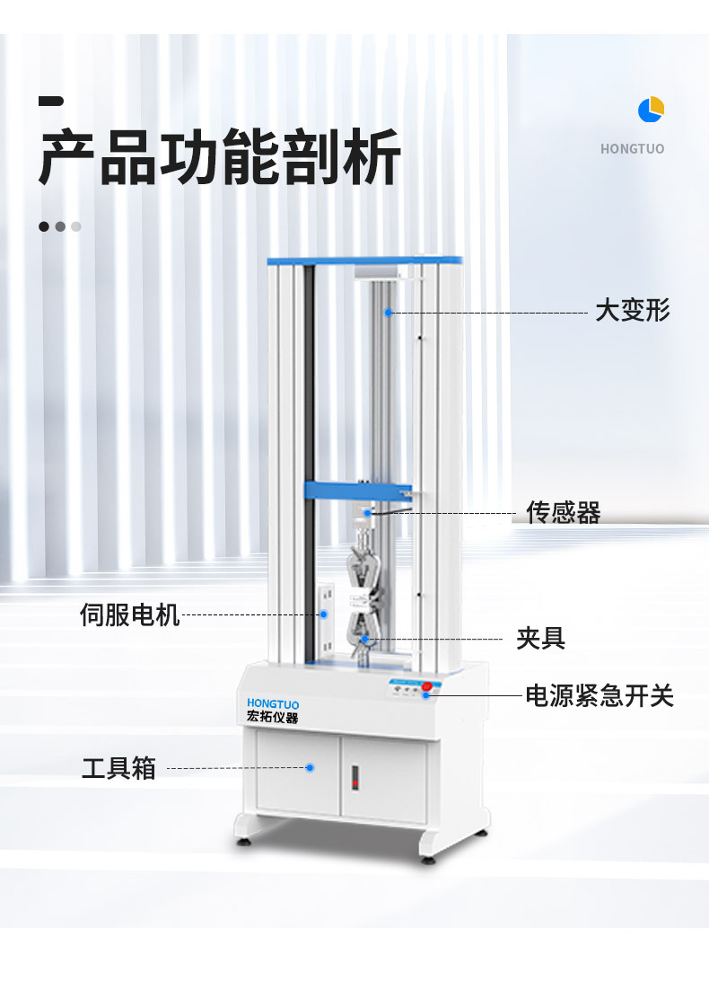 塑料雙臂電子拉力機HT-140SC具有更寬廣準確的加載速度和測力范圍,對載荷、變形、位移的測量和控制有更高的精度和靈敏度,具有應力-應變、力量-位移、力量-時間、強度-時間等模式功能;可求出大力值、抗拉強度、彎曲強度、壓縮強度、彈性模量、斷裂延伸率、屈服強度等參數(shù),適用于拉伸、壓縮、剝離、撕裂、剪切…等力學性能試驗及分析。